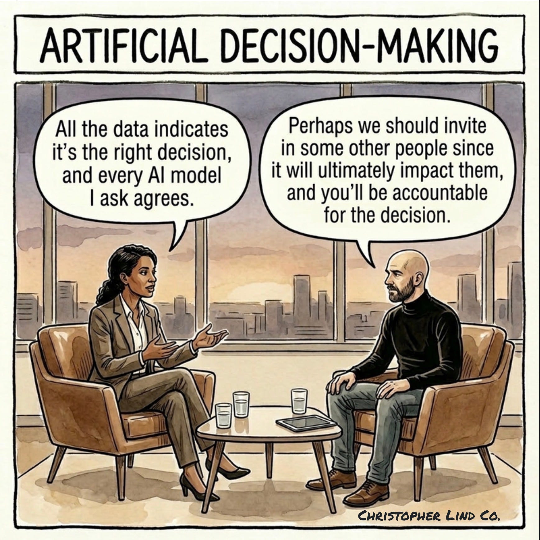 And remember, you can outsource a task to an algorithm, but you can’t outsource your accountability. When an AI-driven decision goes sideways (and it will), you’ll be the one left holding the bag.